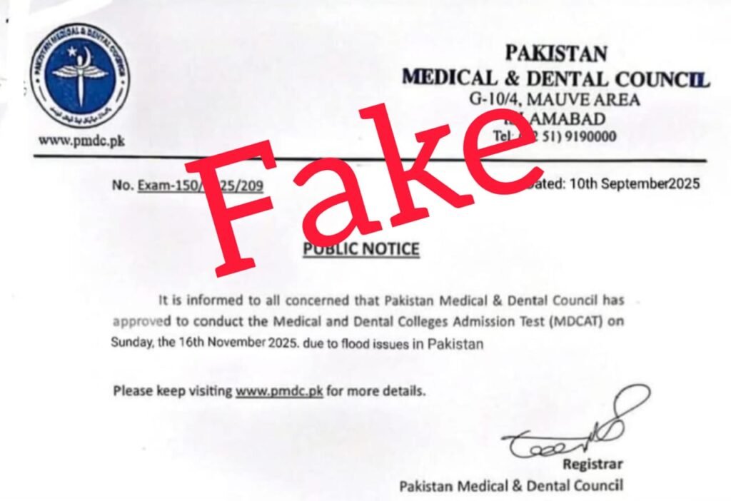 In another notice, PMDC has shared a notification declaring it’s fakeness to all of the students. Basically, as PMDC shared delay notice officially, a lot of fake notifications started to circulate on social media saying PMDC has further delayed MDCAT to the month of November.